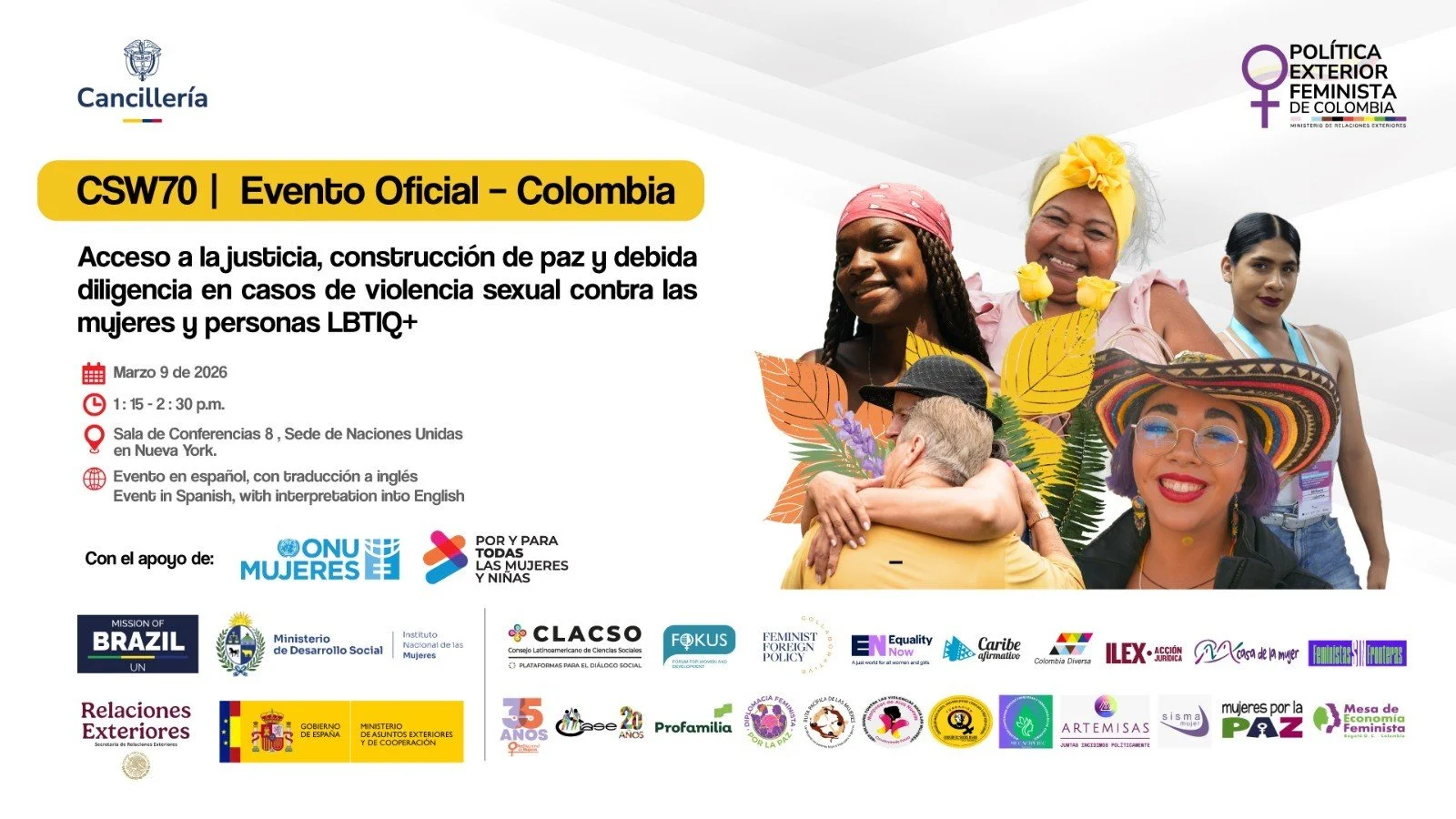 En este sentido, el multilateralismo y los instrumentos internacionales de derechos humanos —en particular la CEDAW y su jurisprudencia— ofrecen herramientas clave para fortalecer los sistemas de justicia, promover estándares comunes y fomentar respuestas estatales eficaces, inclusivas y sensibles al género y a la diversidad sexual. Generar un espacio de diálogo institucional intersectorial de alto nivel en el marco de la CSW permite visibilizar estos desafíos, intercambiar buenas prácticas y reforzar el compromiso de los Estados con una agenda de justicia y paz con enfoque feminista e interseccional, promoviendo la plena participación de la sociedad civil, particularmente de los movimientos de mujeres, organizaciones LGBTIQ+ y organismos de derechos humanos.